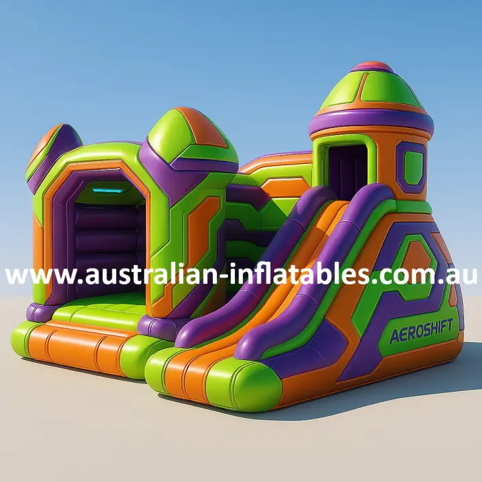 Elevate your next event with the AeroShift Jumping Castle Combo—where cutting-edge design meets inflatable fun. Crafted for thrill-seekers of all ages, this bold, neon-hued masterpiece brings a futuristic playground to backyards and venues across Australia.