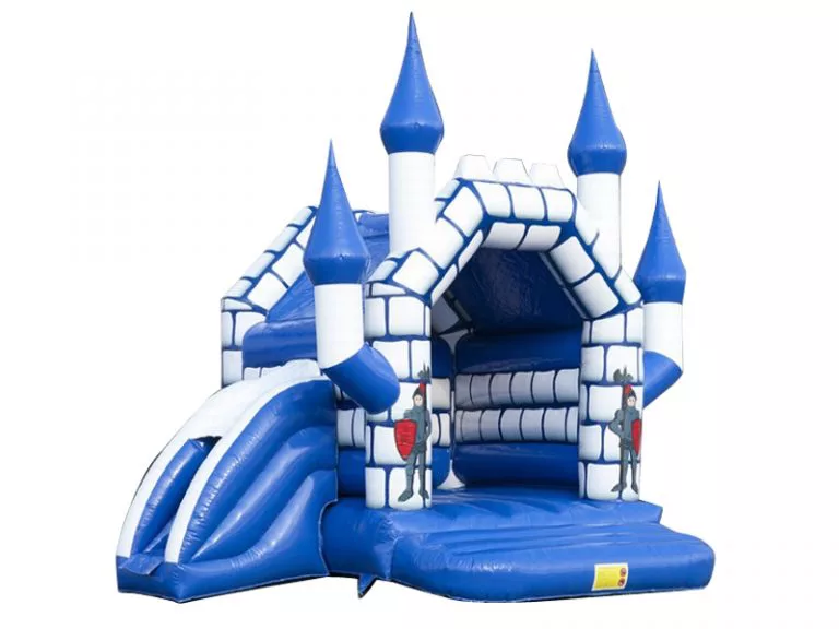 - Features a grand castle design with bright blue and white colours, punctuated by classic medieval towers and gallant knights.